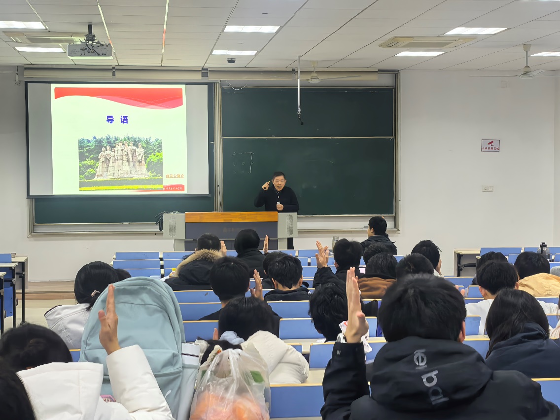 12月23日晚上,在我校D1102教室举办了“信仰之歌”音乐思政讲座。本次讲座邀请了南京市文联原副巡视员、市音乐家协会原副主席章世和老师担任主讲嘉宾,章老师以《为有牺牲多壮志》为题,为在场师生带来一场包含了历史回顾、理论讲座和歌曲学唱等内容的思政美育课。本次讲座由艺术学院板俊荣教授主持。