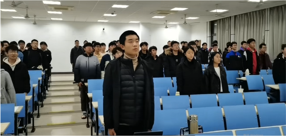 最后,章老师以“《国歌》回想雨花台”作为本次讲座的尾声,同学们起立,由板俊荣老师指挥,大家集体歌唱《义勇军进行曲》,升华了讲座主题,提振了文化自信,深化了情感体验。